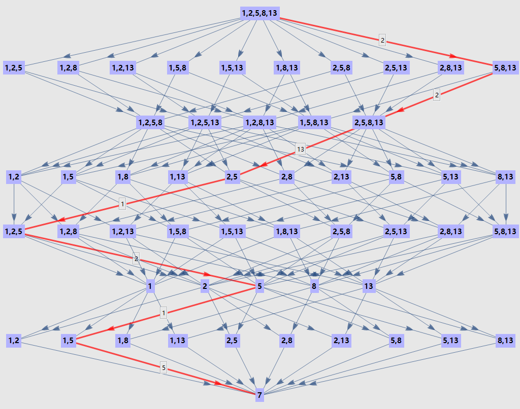 8. {1,2,5,8,13}>{2,8,13}>{1,2,8,13}>{8,13}>{1,8,13}>{1}>{1,2}>{空}
