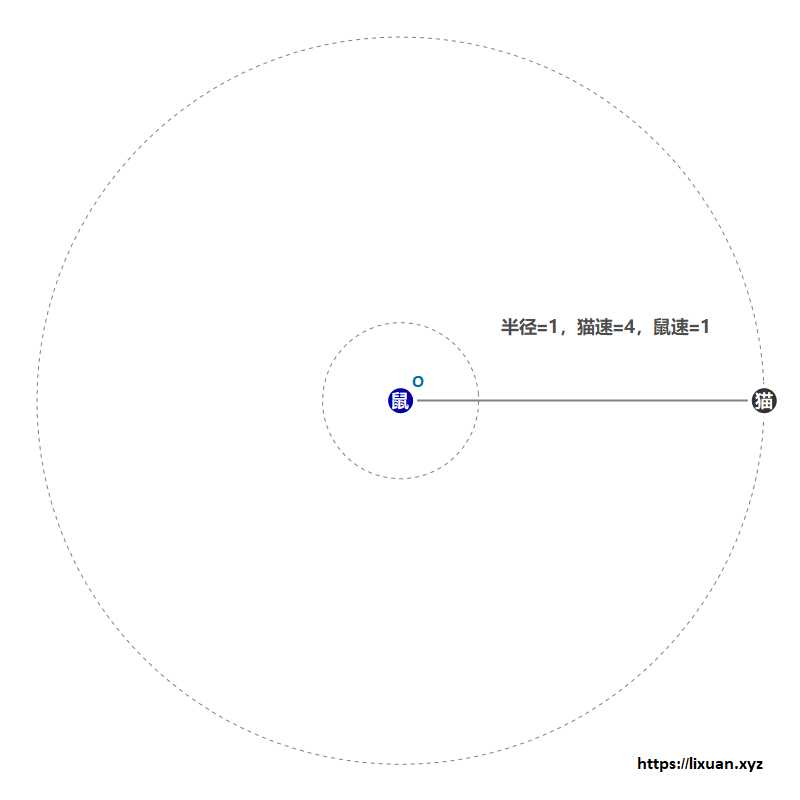 ②初始时猫位于水池正右侧岸边,老鼠位于圆心;